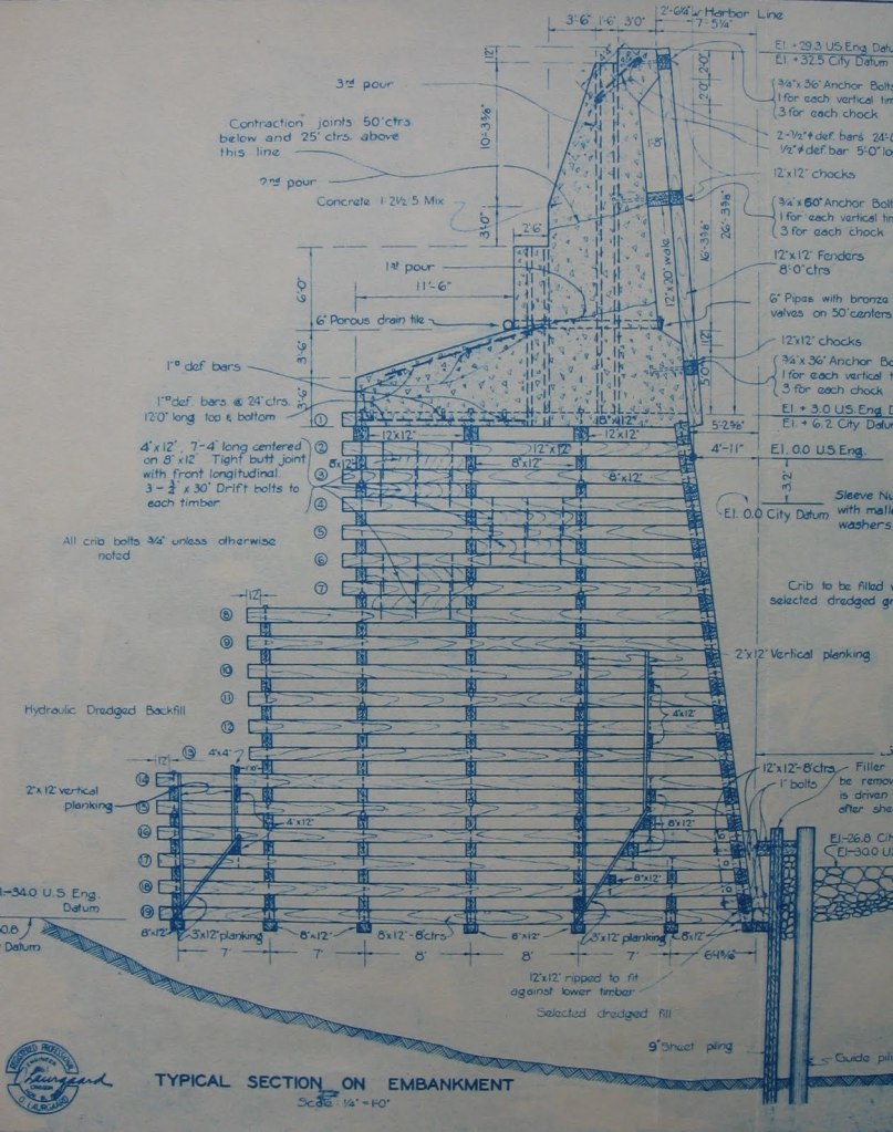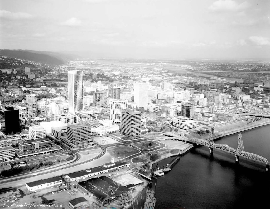 This impulse for permanence, stability, and hardening against an unpredictable force of nature is a through-line in the history of western design approaches. In 1929 the seawall was completed (35’ deep wooden cribs submerged in the willamette supporting the concrete wall we see along waterfront park). In the 1940s a highway system was built over waterfront park, and then torn down in the 1970s. This site has only been a park since 1978.