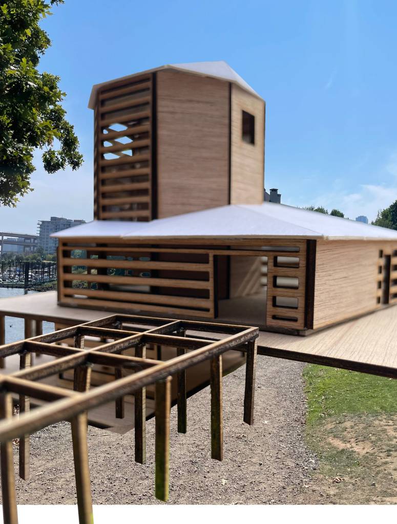 - The floor plan mirrors the 80 degree angle of the seawall. Mirroring it acknowledges the history it is born from, but through its porosity it proposes a different way to engage with its site, place, people.