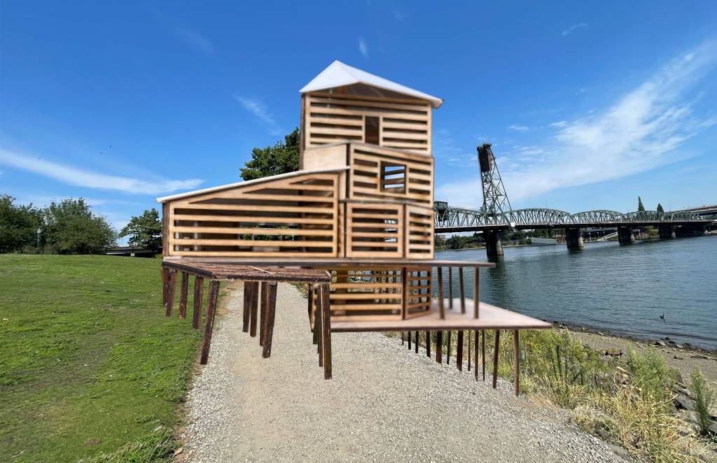 The first Euro-settler structure was built in 1843 and set the stage for a new chapter of settler-colonialism. As we all know, what followed was mass destruction, violence, and clear cutting. By 1857 portland was already known as “stumptown.” Comparing the architectural approaches of these two eras: I see it as a dichotomous hardening and softening (among other things!). Chinook people moved seasonally, dismantling their winter homes, submerging them in water to prevent rot, and settlers built “permanent” structures along the river front that would fail depending on the season.