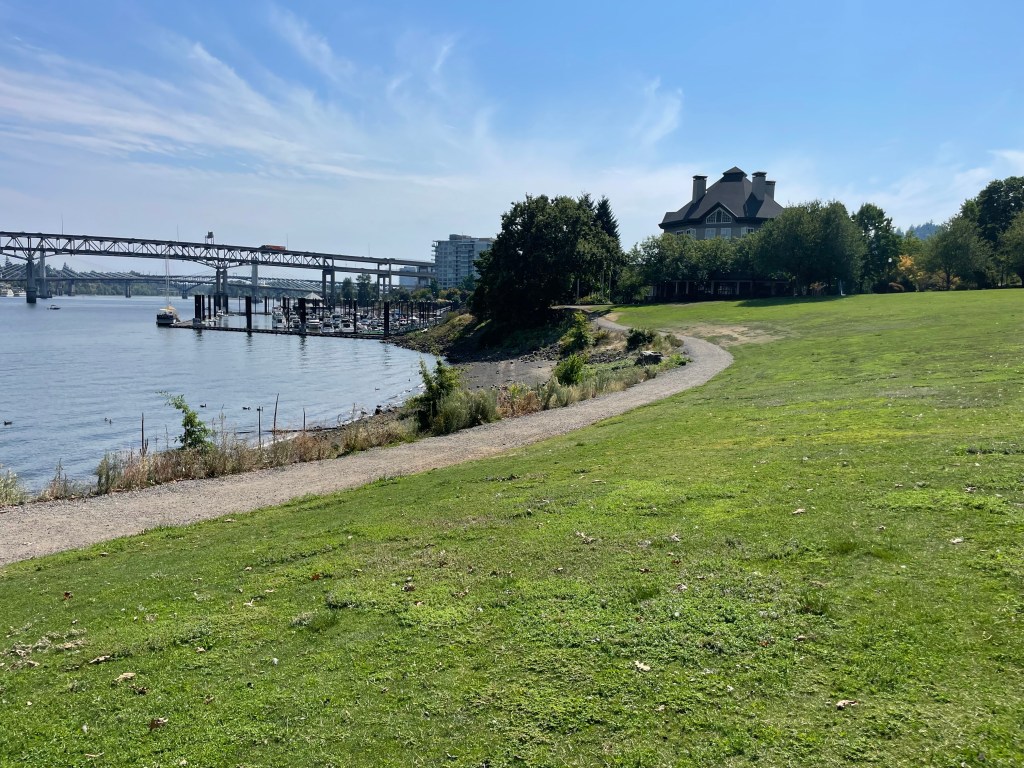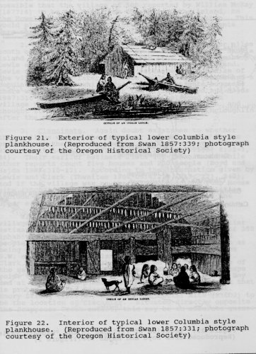 The historical context and architectural heritage of this place, and specifically South Hawthorne Waterfront Park, is the traditional home of Kalapuya and Chinook people who built plankhouses: long gabled wooden structures along the river bank. Interestingly, Chinook people would dismantle the plank siding and roofs of their winter plankhouses, leaving only the structural frame, and sometimes submerge them in water for the non-winter months to preserve them. Cathlapotle plankhouse:
