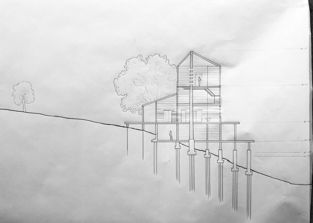 Throughout this design I was considering ideas of anti-permanence, anti-rigidity, and porosity as a response to the fortressness of the seawall. “Sustainable” construction often incorporates longevity targets, designing say the 300 year old building. Is this sustainable? What would it look like to embrace an Ethos of Repair rather than permanence?