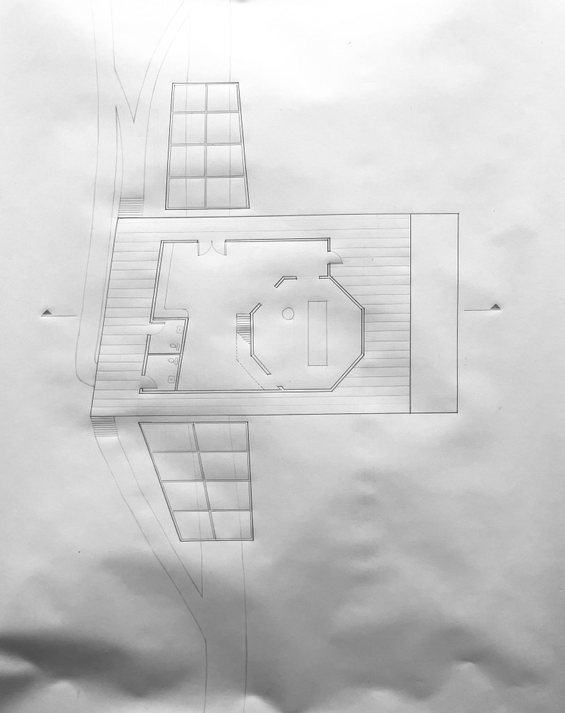 The third and final phase for the studio was to design a pavilion that incorporates our site research and guest/host dynamic established in the meal. The pavilion must include: two thresholds and pathways for entering and exiting, a locked portion of the pavilion for reservation, an open air public space available at all times, ADA bathrooms, a small kitchen and storage space.