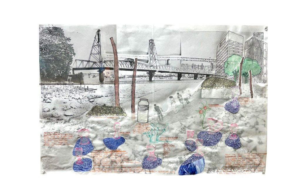 This quarter our project site was South Hawthorne Waterfront Park, the last stretch of undeveloped beach in downtown Portland. For 8 weeks we engaged with this site through three assignments. We were a cohort of 6 students, all who have never taken an architectural studio class before.