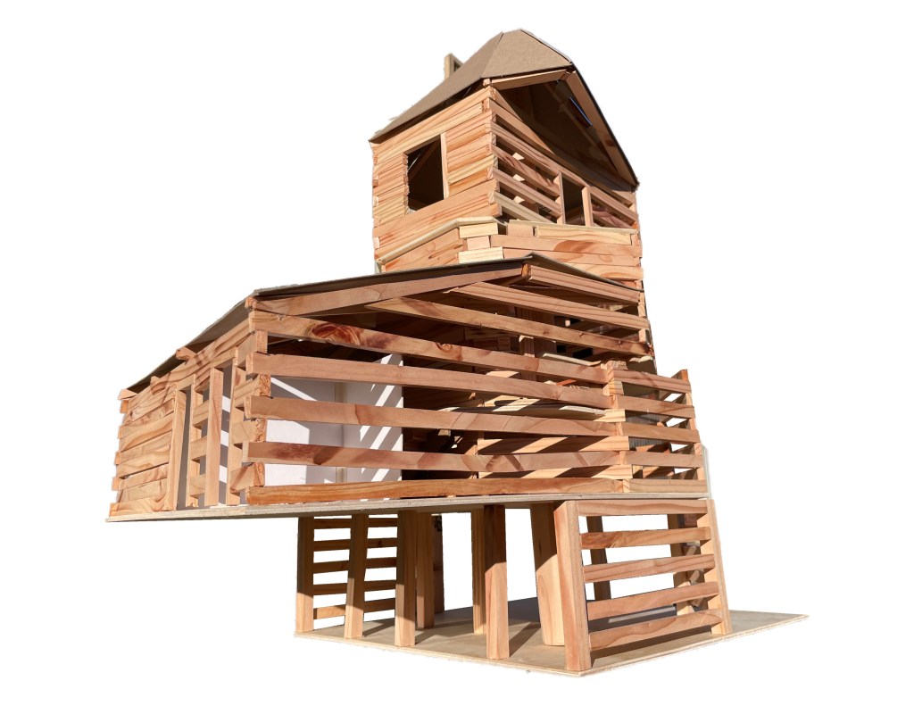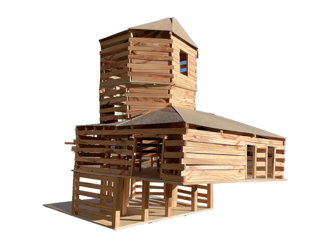 - An ethos of repair: designing a modular building that does not use adhesives and has a map of repair with a manual for the dimensions and types for notches, dowels, members, etc. to easily replace rotten wood elements.